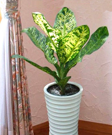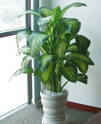- Tên khoa học: Dieffenbachia sp. - Họ thực vật: Araceae – Họ Ráy - Đặc điểm: Cây thân mập, tròn, cao 0,5-1m, có các vòng sẹo do lá rụng để lại. Lá mọc tập trung ở đầu cành, lớn, dạng bầu dục thuôn nhọn đầu, mở rộng ở gốc hình tim, cuống mập, có bẹ ôm thân. Lá màu xanh bóng dày, gân lông chim màu xanh trắng, nổi bật các vệt trắng vàng hay ánh bạc nằm rải rác trên phiến lá. - Điều kiện ánh sáng: Cây chịu bóng toàn phần hoặc bán phần. Nên đưa cây ra ngoài nắng 2 lần/ tháng. - Nhân giống: Trồng bằng cách tách chồi. - Nhu cầu nước tưới: Nên tưới 3 lần/ tuần. - Ứng dụng trang trí: Trồng chậu sành tráng men đặt góc phòng khách hoặc trong văn phòng, dọc hành lang. |