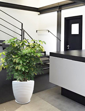 - Tên khoa học: Schefflera arboricola var. variegata Hort. - Họ thực vật: Araliaceae – Họ Ngũ gia bì - Đặc điểm: Cây thân gỗ, cao khoảng 3-5m. Lá hình chân chim, có 6-8 lá chét hình trứng, dạng tròn. Một số loại có đốm vàng trên lá. Hoa mọc thành cụm, hoa nhỏ có màu nâu vàng hoặc xanh nhạt. - Điều kiện ánh sáng: Cây chịu bóng bán phần. Nên đưa cây ra ngoài nắng 3 lần/ tháng. - Nhân giống: Trồng bằng giâm cành. - Nhu cầu nước tưới: Nên tưới 2 lần/ tuần. - Chất trồng đề nghị: Xơ dừa: tro trấu tỉ lệ 2:1 - Ứng dụng trang trí: Thích hợp trồng chậu trang trí trong phòng khách hoặc nơi công sở, hành lang đều đẹp. |