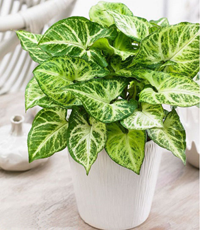 - Tên khoa học: Syngonium podophyllum Schoot. - Họ thực vật: Araceae – Họ Ráy - Đặc điểm: Cây thân cỏ, bụi nhỏ, leo bám vào các cây thân gỗ hoặc giá đỡ, có nhiều rễ khí sinh. Lá to bản, đầu nhọn, gốc tim sâu, màu lục bóng và nổi bật các gân màu trắng, cuống dài, gốc có bẹ ôm thân. - Điều kiện ánh sáng: Cây chịu bóng toàn phần hoặc bán phần, nên cho cây ra ngoài nắng 1 lần/ tháng lúc 4 – 5 giờ chiều. - Nhu cầu nước tưới: Nên tưới hàng ngày. - Nhân giống: Trồng bằng thân, dễ trồng, lan nhanh - Chất trồng đề nghị: đất trộn tro trấu tỉ lệ 1:2. - Ứng dụng trang trí: Thích hợp trồng bán thủy sinh, chậu nhỏ để bàn. Cây có tác dụng lọc không khí. |