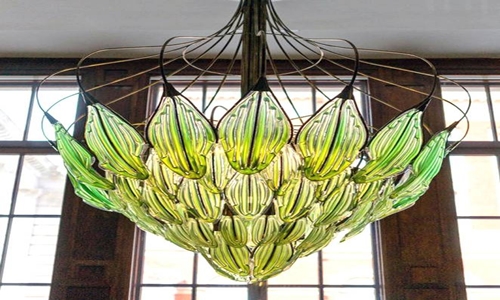 Đèn chùm bao gồm các "lá thủy tinh" chứa tảo xanh có khả năng hấp thụ khí carbon dioxide (CO2), đồng thời cung cấp thêm oxy cho bạn thở. Nó giống như một loại cây trồng làm sạch không khí trong nhà.